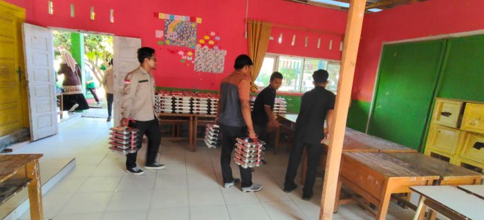 Pelaksanaan program ini ditandai dengan kedatangan tim pendistribusi dan pejabat terkait yang langsung memantau penyaluran makanan ke sekolah. Terlihat tumpukan kotak makan yang siap disajikan, menunjukkan kesiapan logistik dalam pelayanan kepada siswa.