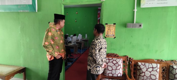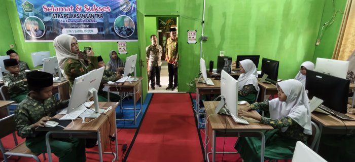 SAROLANGUN Kepala Kantor Kementerian Agama (Kankemenag) Kabupaten Sarolangun, Drs. H. M. Syatar, melakukan kunjungan kerja dan monitoring langsung ke lokasi pelaksanaan Tes Kemampuan Akademik (TKA) di Madrasah Ibtidaiyah Negeri (MIN) 1 Sarolangun.
